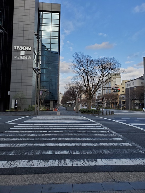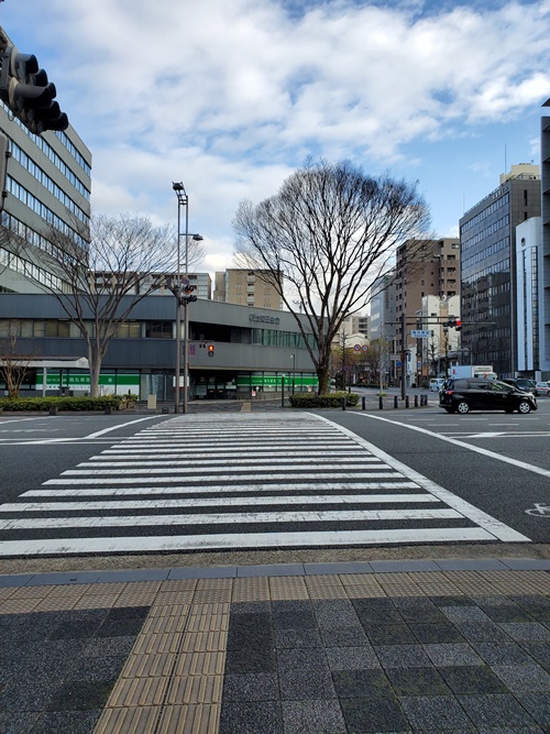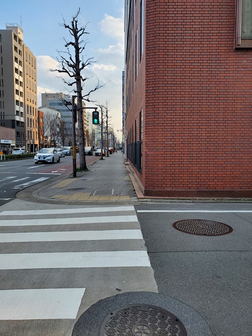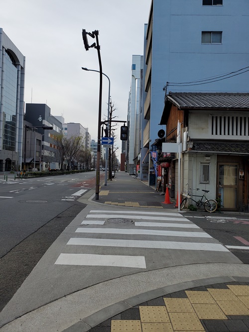 21:からすま通の横断歩道を進行方向(西方向)に向かってわたります。