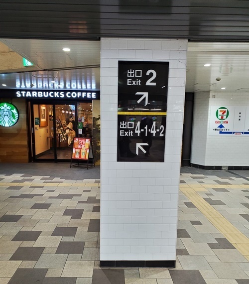 2:階段をご利用の方は出口2へ、エレベーターをご利用の方は出口3へ